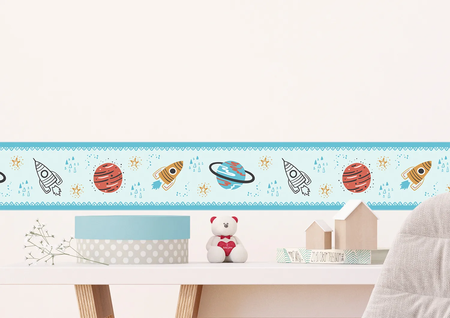 Discover a wide range of themes and styles created to captivate any child. Each design is made with love by our passionate team to add magic and excitement to your child’s room. Alongside our kids wall borders, explore our range of textile products, wall stickers, and murals to complement the theme seamlessly.
