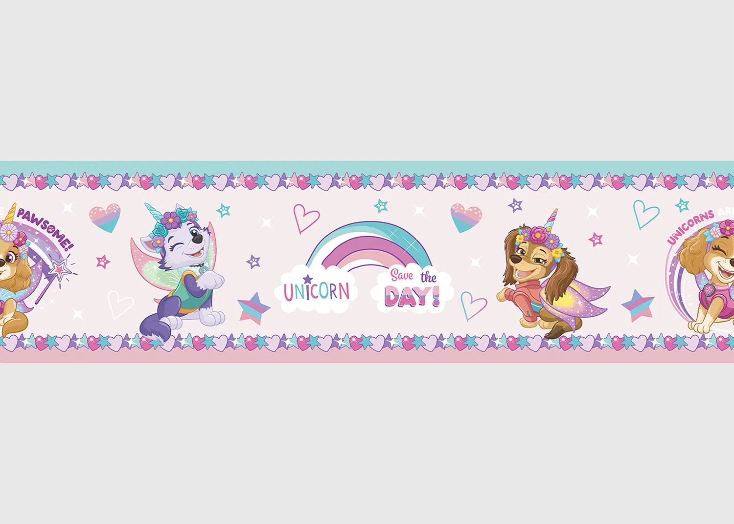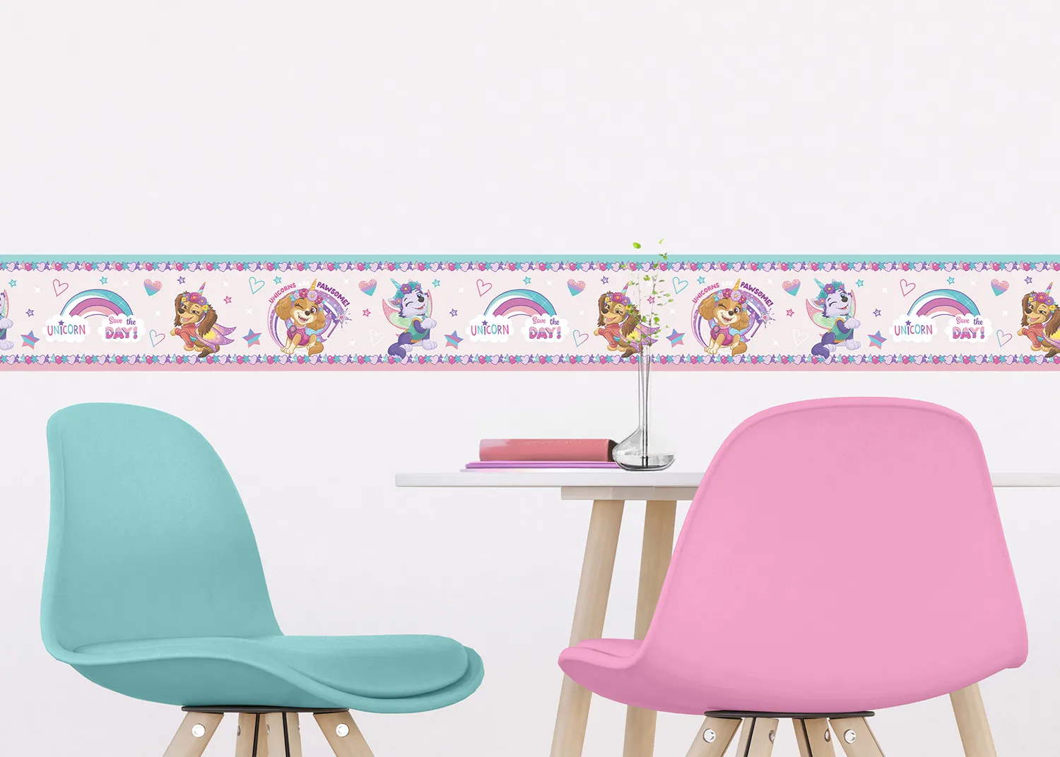 Explore adventures of brave Paw Patrol team with our charming designs, which are tailored to captivate any child. Crafted with love, each border adds a sprinkle of magic to your child’s room. Alongside our Paw Patrol wall borders, explore our range of textile products, wall stickers, and murals to complement the theme seamlessly.