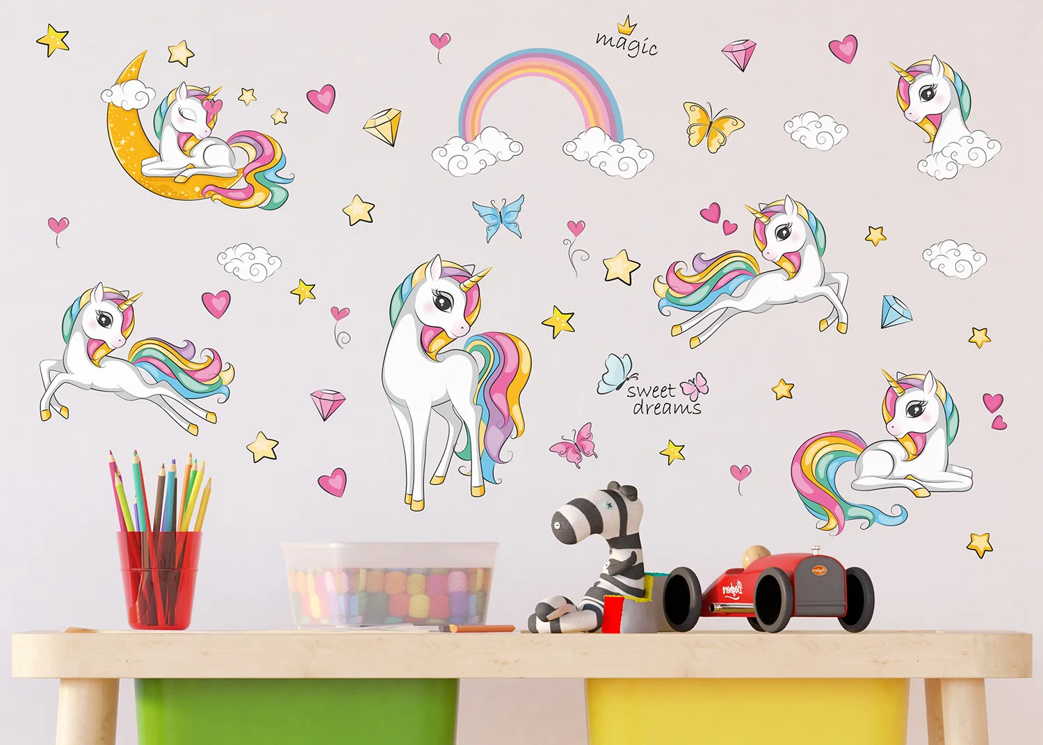Discover a wide range of themes and styles created to captivate any child. Crafted with love, each sticker adds a sprinkle of magic to your child’s room. Alongside our kids wall stickers, explore our range of textile products, wall borders, and murals to complement the theme seamlessly.