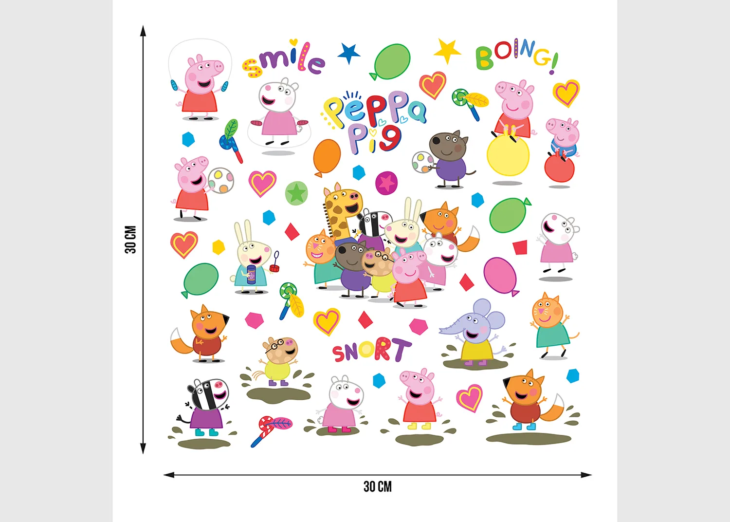 Thanks to its characteristics, any sticker, regardless of its size, effortlessly adheres to any flat, smooth and grease-free surface. Transform your space with our enchanting Peppa Pig wall decals that seamlessly combine creativity, premium quality, and eco-friendly practices. If you have any questions, don’t hesitate to contact us, we are always glad to help you.