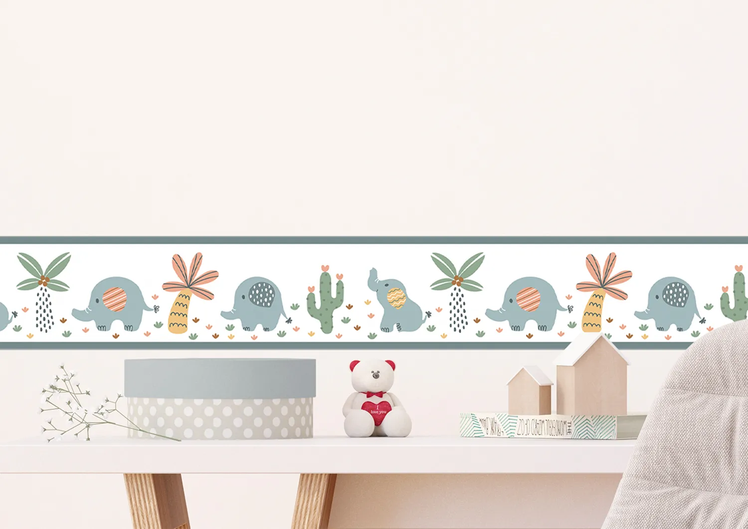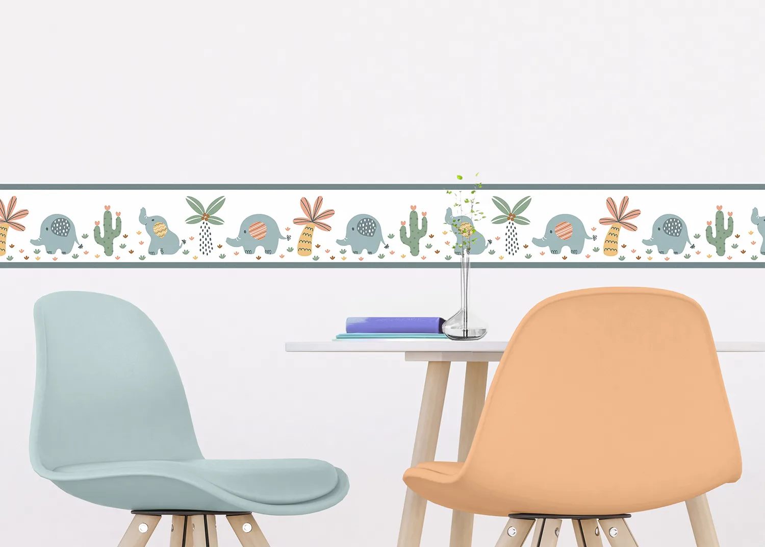 Wall Border White Elephants | 5 m x 13.8 cm | WBD 8507