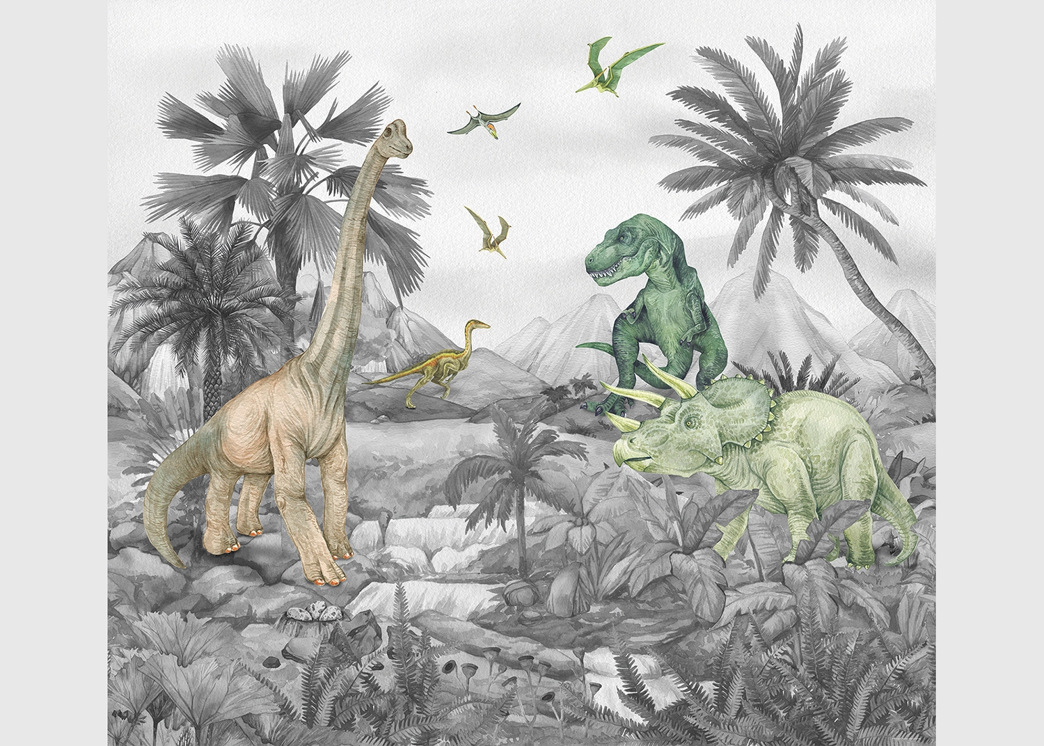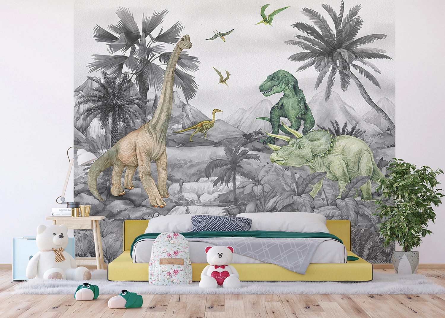 Step into prehistoric adventure right in your child’s room with our delightful Dino wall mural! Designed to infuse warmth and joy into their space, these photomurals bring a playful touch to any kid’s haven. Bring your little explorer into a land of ancient wonders and colossal creatures, igniting their imagination and love for different dinosaurs!